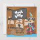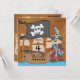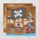 Ahoy matey ! Un drapeau crâne et os croisés flotte dans la brise près du grand pirate tandis que le capitaine aux cheveux blonds est habillé d'un équipement de pirate avec un patch pour les yeux et un perroquet ! Le dos de ces invitations colorées aux pirates comporte une carte des trésors et des zones que vous pouvez facilement ajouter toutes les particularités de votre fête d'anniversaire de pirate!
