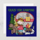 Les filles qui aiment le camping aimeront ce design extérieur mignon qui met en vedette une fille blonde en vacances de camping, un ours, hibou, camping-car, arbres et feu de camp!