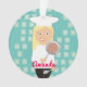 Belle fille blonde portant le casquette d'un chef et tenant une poêle à frire et cuillère, personnalisée avec votre nom, parfaite pour les parents ou grands-parents à donner à un cuisinier ou boulanger en herbe.