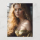 Blonde dans une carte postale robe or
