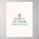 Bring gentle inspiration to your space with this minimalist motivational poster featuring the quote “Bloom at Your Own Pace.”