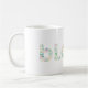 This mug features a clean botanical typography illustration of the word ‘BLOOM’, where each letter is filled with miniature plant-inspired shapes and organic details.