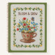 Nurture your ideas with the "Bloom & Grow" journal. This cover features a delightful faux-embroidery illustration of a rustic patterned teacup overflowing with a vibrant bouquet of red poppies, yellow daisies, and blue wildflowers. A tiny, colorful butterfly flutters just above the blooms, adding a sense of movement and life. Set against a clean linen-textured background and framed by a dainty yellow and green floral vine border, this design captures the warmth of a sunlit garden tea party.