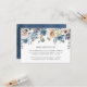 Notre carte de réception de mariage élégante et stylée présente une bordure supérieure de fleurs et de verdure à l'aquarelle blanche, beige et bleue. Personnalisez le design en ajoutant les détails de votre réception de mariage. Conçu pour coordonner avec notre collection de mariage Blooming Beauty.
