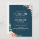 Invitation de mariage élégante et stylée avec des roses peintes à l'aquarelle sur fond bleu marine. Vous pouvez personnaliser le fond avec la couleur de votre choix. Choisissez une forme découpée ou un papier texturé pour un effet luxueux supplémentaire. Mélangez et associez les éléments de cette collection pour un ensemble d'invitations harmonieux et élégant.