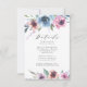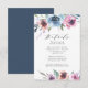 Cartes élégantes et élégantes pour l'enceinte de mariage avec vos détails mariages avec bouquets haut et bas de roses d'aquarelle violet, bleu et mauve vert luxuriant feuilles. Personnalisez la carte en ajoutant des informations importantes telles que l'hébergement à l'hôtel, le site Web du mariage, les itinéraires, etc. Conçu pour coordonner avec notre collection de mariages Midnight Blooms.