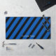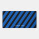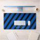 Enhance your desk with an unique, diagonal stripes, blue and black desk mat. The options to remove or add text, change the font and size, along with the background color are available.