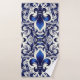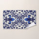 A blue and gray fleur de lis design on this beautiful neutral color towel set.