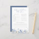 Ajoutez une touche de coeur à votre bébé en baby shower de fleurs avec ce jeu Blue Baby In Bloom Baby Predictions and Advice Game - une façon mignonne et significative d'impliquer vos invités! Conçue avec des éléments bleu doux, fleuris et fleur sauvage, cette charmante carte de conseil sert de garde aux parents. Les clients peuvent partager leurs meilleurs voeux et des devis drôles ou réfléchis dans ce jeu captivant de prédictions de bébé, créant des souvenirs durables pendant votre baby shower. Un complément parfait à votre collection de jeux de baby shower, il complète magnifiquement votre bébé dans le thème de la floraison.
