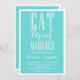 Faire-part de mariage personnalisable avec typographie "Mange, Bois et Etre Marié". Il s'agit d'une partie d'une suite mariage - des articles assortis et d'autres couleurs sont disponibles.