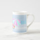 jolie porcelaine, bonne dimension effet brillant bien dans l'ensemble. Le motif et les couleurs sont réussis.Je trouve néanmoins dommage de ne pas occuper tout l'espace avc le motif car la partie rouge au dos de la tasse est trop présente et pas intéressante visuellement.