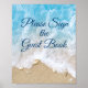 Cette enseigne Please Sign the Guest Book mariage est inspirée de la plage et accentuée par les vagues bleues de l'océan, sable de plage, étoiles de mer, dollars de sable et coquillages, ce qui le rend parfait pour la plage, tropical ou mariage de destination. Il fait partie de la collection Mariage Blue Waves.