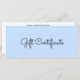 Certificat cadeau d'affaires bleu avec élégante arrière - plan bleu pastel à l'avant et blanc à l'arrière. Vous pouvez utiliser cette carte cadeau/bon pour salon de beauté, spa, petite entreprise, certificat cadeau de détail, services de coiffure et de maquillage, yoga studio thérapeute ou toute autre entreprise. Consultez notre collection de magasins ci-dessous pour plus de chèques-cadeaux.
