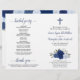 Ce beau programme est conçu pour une cérémonie catholique. Il présente un design boho chic rustique avec des roses aquarelles peints à la main dans des tons bleu poussiéreux, marine, indigo et saphir. Il y a un crucifix ou une croix, avec une élégante calligraphie de script pour les noms des couples et des titres. L'intérieur a agrandi l'espace pour tous les détails de la cérémonie, tandis que l'arrière contient des informations sur la fête de la mariée ainsi qu'une brève note de remerciement. Belle façon d'accueillir vos invités et de faciliter leur suivi avec la cérémonie. Veuillez noter : Les programmes expédient comme des feuilles de papier plat, vous aurez besoin de les plier vous-même.