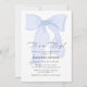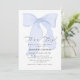 Célébrez l'arrivée prochaine d'un bébé avec cette invitation à Baby shower Blue Bow! Avec son arc magnifiquement illustré, ses teintes pastel douces et sa typographie élégante, ce design intemporel donne le ton parfait pour une célébration sophistiquée et mémorable. Personnalisez-le avec vos détails d'événement pour une touche unique !