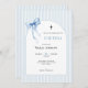 Introducing our blue bow baptism invitation with blue & white striped background for girls, a simple and elegant choice for your child's special day. This baptism invitation serves as the perfect christening invite, designed for boys and religiously classy. The modern minimalist design ensures that it suits a variety of themes, including Catholic arch events. Make your child's baptism memorable with our blue bow invitation that reflects the joy of this sacred moment. Customize the name, date, place, just click <<personalize this design>>.