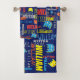 Mignolette conception originale des monstres aliens de pixels graphiques et nom de texte couverture personnalisée. Cette serviette typographique en texte rouge, orange, bleu, gris et jaune clair peut également être customisée avec votre propre nom, dit actuellement William. Autres noms disponibles ou contactez-moi pour des demandes de nom. Art et design originaux par Sarah Trett pour www.mylittleeden.com