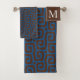 brown and blue abstract pattern monogram name bath towel set .