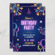 Blue Colorful Neon Birthday Party Invitation