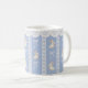 Start your spring mornings or serve Easter brunch coffee in style with this elegant coquette aesthetic ceramic mug. Featuring a beautiful repeating pattern of watercolor bunnies, delicate white lace stripes, and white ribbon bows against a solid blue background, this feminine mug is a must-have for the season. With options to customize the design using Zazzle's intuitive tool or leave it as a stunning seamless pattern, it serves as the perfect grandmillennial holiday gift, a charming Easter basket stuffer, or a beautiful addition to your own pastel drinkware collection. Durable and microwave safe, it is as functional as it is beautiful.
