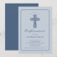 Invite family and friends to honor an important step in faith with this elegant blue cross confirmation invitation. Featuring a refined leafy cross illustration, soft blue tones, and timeless typography, this design blends tradition with modern simplicity.
