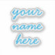 Custom cute light blue Modern Simple Handwritten Name Text Script clear Stickers for Water Bottles, tumblers, notebooks, laptops and more featuring your personalized text in a cute and friendly handwriting font. Font style and colors are fully customizable.