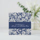 Personnalisé 60e anniversaire invitations de fête en bleu marine foncé élégant et crème de blanc classique motif floral damask. Ajoutez votre nom et les détails de votre fête pour une invitation unique et élégante à la fête du 60e anniversaire.