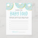 Devinez la saveur de chaque pot d'aliments pour bébés. La personne qui a le mieux gagné ! | Ajoutez cette carte de jeu Guess the Baby Food Flavor à votre baby shower. Cette carte de jeu trivia baby shower présente des beignets d'aquarelle bleu avec des arrosages colorés. Personnalisez en ajoutant des noms, des événements et des dates. Ce beignets bleu Guess the Baby Food jeu est parfait pour toute saison de baby shower ou de thème.