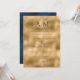 De beaux monogrammes mariés et mariés au sommet de cette belle faire-part de mariage. Faux arrière - plan d'or avec police bleue profonde pour coordonner avec le dos bleu affligé de cette élégante invitation. Absolument époustouflant de prendre.