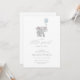 Celebrate your little peanut with this adorable blue elephant baby shower invitation featuring a watercolor elephant holding a light blue balloon. A perfect editable template for modern boy baby showers with soft pastel charm.