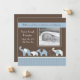 Notre nouveau faire-part bébé d'éléphant bleu est livré avec une rangée d'éléphants bleus alignés en bas et de la place pour le nom du bébé, le poids et la longueur sur le devant.