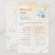 Bring smiles and friendly competition to your baby shower with this “Would She Rather” game card. Featuring a sweet watercolor elephant swinging on a cloud with soft golden stars, the design captures a dreamy nursery vibe while guests guess the mom-to-be’s preferences. A fun and charming baby shower activity.
