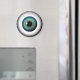 Blue Eye Iris © Sunny Mars Designs. Cool, amusant imprimé sur mesure bleu eyeball nouveauté rond frigo ou aimant réfrigérateur avec une tendance, moderne, belle, unique, monstrueux, déplaisant, bizarre et tordu illustration graphique d'un grand bleu réaliste eyeball iris d'un oeil. D'autres modèles de lunettes de couleur sont également disponibles en magasin.