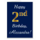 Ce simple design de carte d'anniversaire comporte le message "Joyeux 2e anniversaire", avec le "2e" ayant une apparence fausse or. Il porte également un nom customisé et un arrière - plan bleu foncé. On pourrait le donner à quelqu'un qui célèbre son deuxième anniversaire.