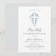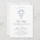 blue floral cross first holy communion invitation