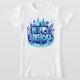 This festive birthday T‑shirt features a bold “HAPPY BIRTHDAY” greeting in vibrant shades of blue, purple, and turquoise. The lettering has a playful, modern style that instantly feels celebratory. Surrounding the text is a mix of abstract leaves, trees, and snowflake‑like shapes, creating a cool, artistic, winter‑inspired vibe.