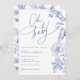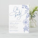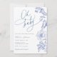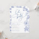 Baby shower Floral bleu invitation à honorer la maman d'être! Le design comporte une bordure de fleurs bleues dessinées à la main. Personnalisez avec vos informations ou cliquez sur "Cliquez pour customiser plus loin" pour modifier les styles, la taille et les couleurs des polices.