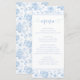 Elegant and classic bridal shower menu cards designed to bring a refined and sweet touch to your wedding reception or bridal shower celebration. Featuring beautiful blue porcelain toile rose florals, this timeless design adds a stylish and sophisticated accent to your table setting and wedding decor.