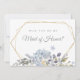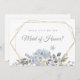 Serez-vous ma carte d'honneur ? Aquarelle romantique bleu poussiéreux floraux et feuilles sur cadre géométrique or.