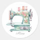 Blue Floral Sewing Machine Round Stickers
