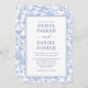 Blue French Floral Photo QR Code Toile Invitation