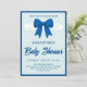 Blue Gingham Bow Boy Baby Shower Invitation