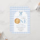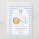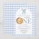 Celebrate your little one’s first birthday with this sweet and charming “Cutie Pie” invitation featuring soft blue gingham, a watercolor pie illustration, and a delicate bow detail.