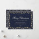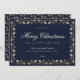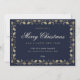 Personnalisé bleu et or Joyeuse carte de Noël avec holly or sur un arrière - plan bleu.