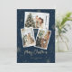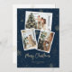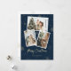 Photo en bleu et or sur mesure Joyeuse carte de Noël avec collage photo avec flocons de neige et chute de neige. Personnalisez facilement cette carte de vacances moderne enneigée avec vos photos et texte.