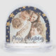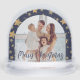 Vintage élégant boule de neige de Noël encadré d'arrière - plan bleu avec motif étoile de Noël or. Personnalisez votre photo de famille et votre nom avec une typographie artistique moderne bleue.