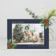Blue Gold Watercolor Holly Photo Cartes de Noël