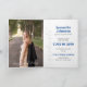 Élégant script annonce votre diplômé sur votre photo senior préférée sur le devant. Bloquez leur nom sur le devant, et tous les détails de la cérémonie à l'intérieur avec une autre photo. Back inclut un espace pour relayer leurs plans futurs ou inclure un message de remerciement. Design disponible en couleurs scolaires de rouge, orange, violet, vert, bleu, orange brûlé, marron et noir. Produits correspondants disponibles.