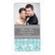 Elégant Mariage merci étiquettes modèles photo sur mesure dans le bleu turquoise turquoise, gris et blanc élégant avec motif classique et romantique floral vintage damask, l'ajout parfait à votre mariage, disponible dans une large sélection de produits mariages assortis. Parfait pour les faveurs de mariage ou les étiquettes de bouteille de vin mariage.