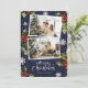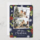 Photo Bleue Joyeuse carte de Noël avec des flocons de neige et de houx avec des baies sur un arrière - plan bleu. Personnalisez facilement cette carte de vacances photo avec vos photos et texte.